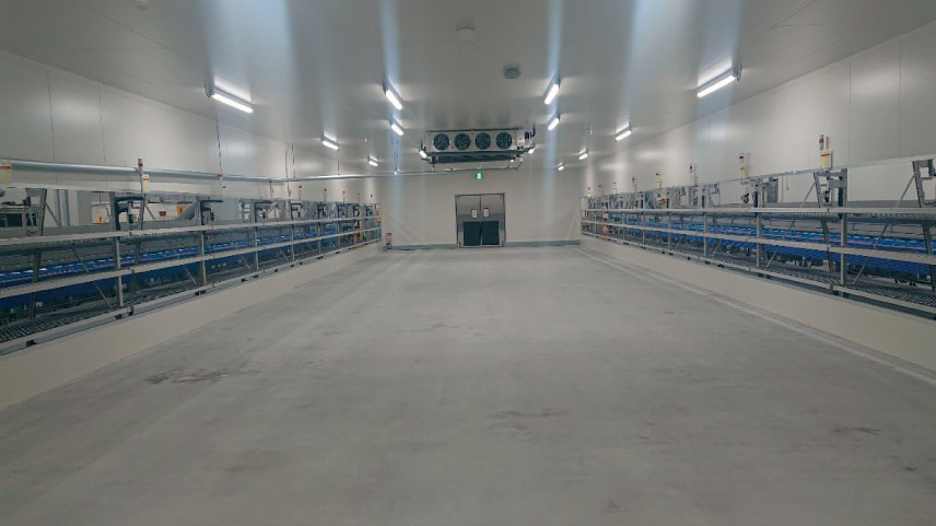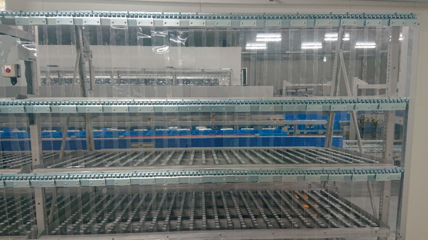 搬送ラインの開口部を隙間なく塞ぐことで、高価な冷気が逃げるのを物理的にブロック。冷凍機への負荷を大幅に軽減し、電気代の削減と製品品質の安定化を実現しました。